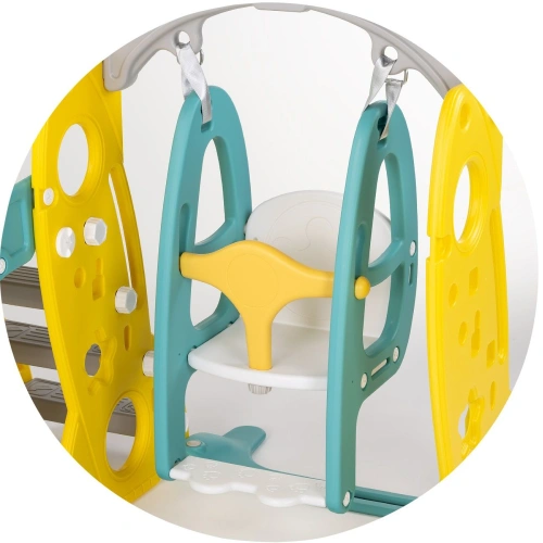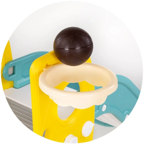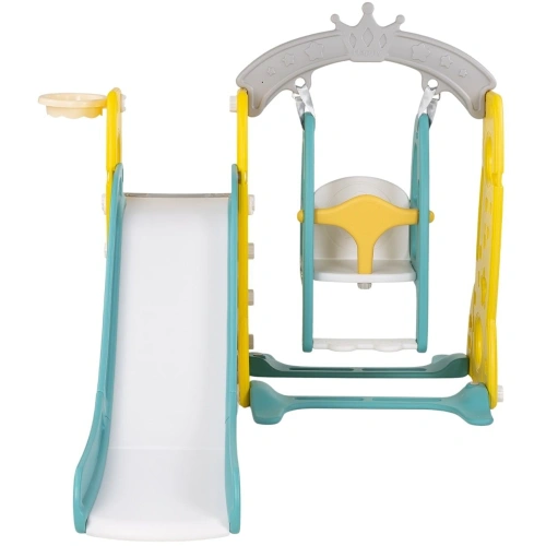 Подарете на своето дете безкрайни часове радост с този цветен и многофункционален игрален комплект от Chipolino, създаден специално за малките изследователи! Съчетавайки пързалка, люлка и баскетболен кош, този комплект е идеално решение за активна игра у дома или в двора. Подходящ за деца над 1 година, той стимулира двигателната активност и развива координацията по забавен и безопасен начин. Този комплект е чудесен избор за подарък и ще превърне всяко кътче в малък детски свят, пълен с приключения и усмивки.