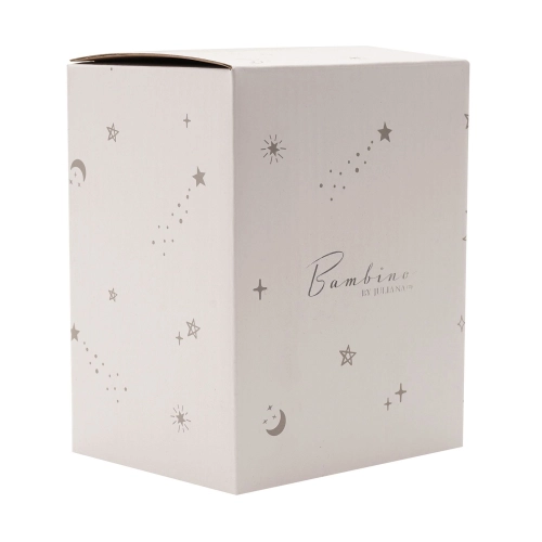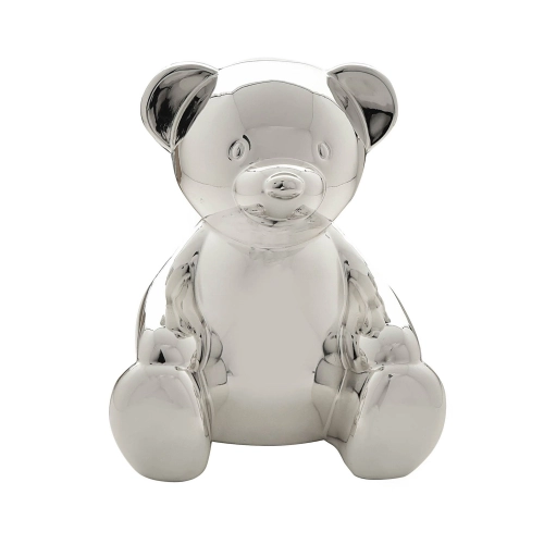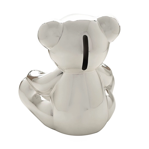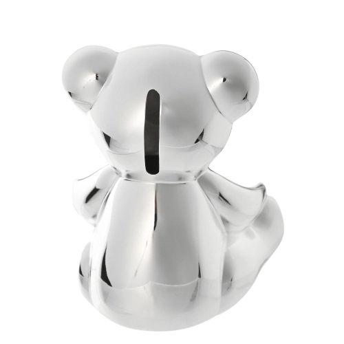 Този прекрасен сувенир е блестяща декорация за детската стая на новодошлите в семейството, която ще бъде ценена вечно. Посребрената касичка е изработена от метал със специално внимание към детайла, което перфектно улавя чара на симпатично плюшено мече. Тя се отличава с гладко посребрено покритие, голям отвор за пари за съхранение на монети и лесно отстраняваща се гумена тапа на основата. Касичката е опакована в затворена кутия с лого.