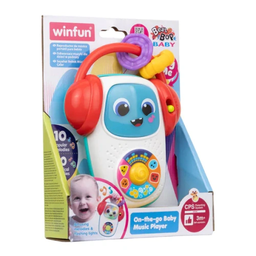 Музикален плеър, който подпомага развитието на езиковите и музикални умения на бебето. Възпроизвежда 10 класически и 10 популярни мелодии.