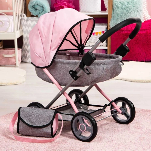 Второ име | Количка за детски кукли COSY с чанта, одеяло и възглавница сиво/розова |