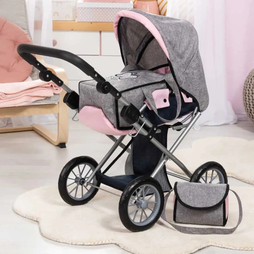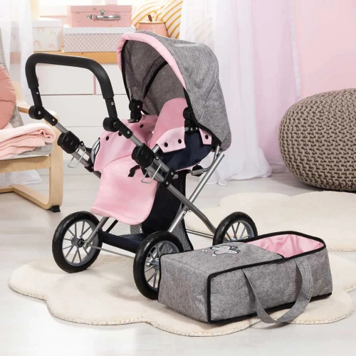 Сива количка за кукли CITY STAR с чанта и порт бебе