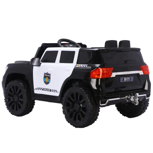 Този полицейски джип ще донесе истинско приключение за твоето дете! С реалистични светлинни ефекти, които имитират истински полицейски патрул, този модел предлага забавление и усещане за шофиране като на истински малък полицай. Вграденият MP3 плейър и USB порт допълват изживяването, а мощната 12V батерия и двата мотора осигуряват безопасно и комфортно каране по различни терени.