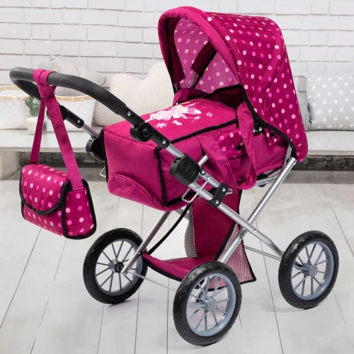 Розова количка за детски кукли CITY STAR с чанта и порт бебе