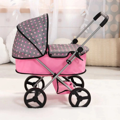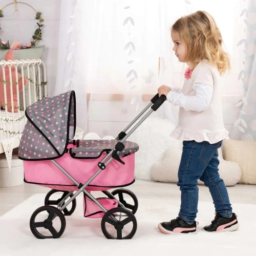 Тази красива детска количка за кукли е подходяща за кукли до 46 см. Всичко необходимо за разходка с куклата може да се съхранява във вградената кошница за пазаруване. Количката може да се сгъва за удобно пренасяне или съхранение.