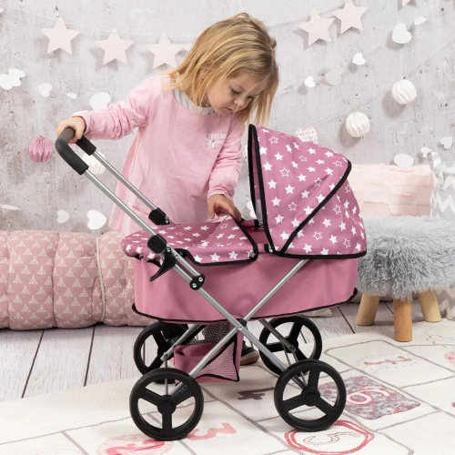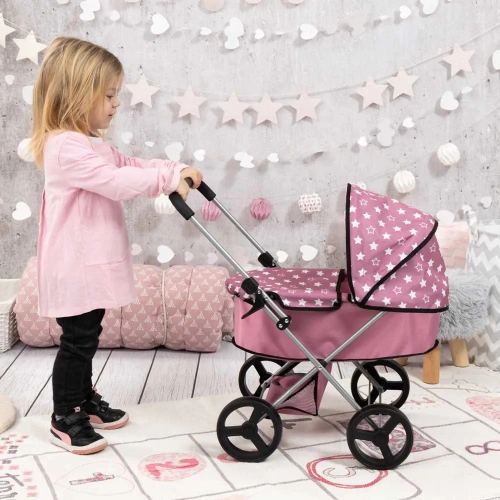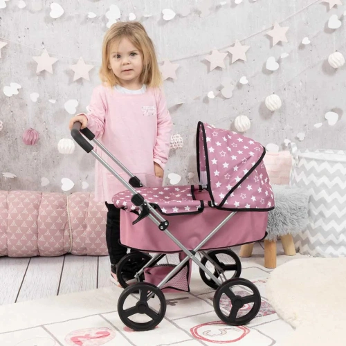 Тази красива детска количка за кукли е подходяща за кукли до 46 см. Всичко необходимо за разходка с куклата може да се съхранява във вградената кошница за пазаруване. Количката може да се сгъва за удобно пренасяне или съхранение.