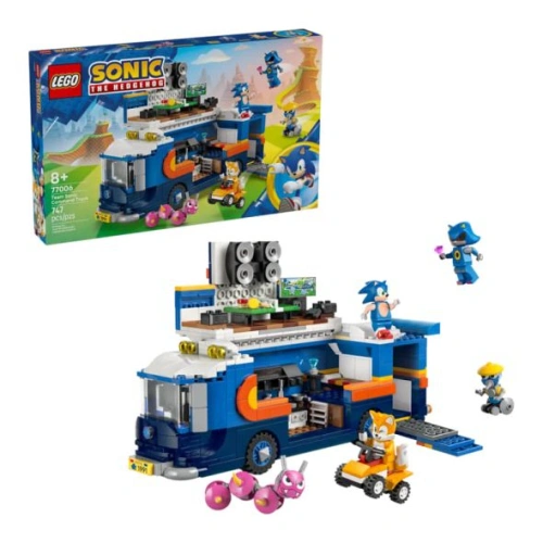 Командният камион на Team Sonic (77006) е идеален за фенове на екшъна и видеоигрите на възраст 8+ години, които обичат да строят с LEGO®. Този комплект LEGO® Sonic the Hedgehog™ включва гейминг камион с отваряща се страна, подвижна кабина, изстрелвачка и помещение с функция за изстрелване на ATV превозното средство. Комплектът е чудесен подарък и включва 5 фигури – Sonic, Tails, Metal Sonic, Burrobot и Caterkiller – за ролеви игри с любими герои.