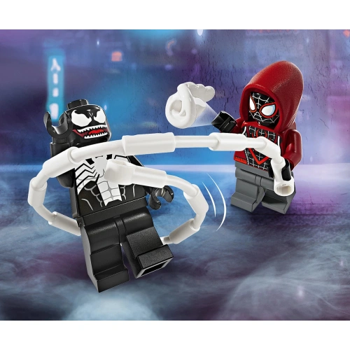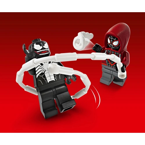 Екшън със супергерой, който хвърля паяжина и виси на нея, с напълно подвижен робот на Венъм за конструиране, плюс минифигури на Майлс Моралес и Венъм.