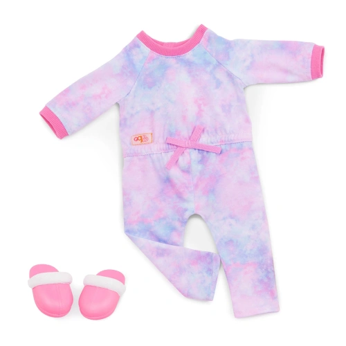 Удвоете играта на пижамно парти с Луна и нейната книжка с приказки! Тази 46-сантиметрова кукла от Our Generation се предлага с аксесоари за преспиване, като одеяло, възглавница във формата на луна, бисквитки, таблет и уоки-токи. Луна е и подвижна кукла. Тя може да сгъва ръцете и краката си, за да създава забавни пози по време на разказване на истории. Тя има меко тяло, което може да се прегърне, вълниста кестенява коса, която е забавна за оформяне, и реалистични светлокафяви очи, които наистина се затварят, когато е време за сладки сънища! Луна пристига готова за преспиване, облечена в пижамен гащеризон, със сладък чифт пантофки и шнола за коса във формата на падаща звезда. Куклите от Our Generation са чудесен подарък за деца на възраст 3 и повече години и ги насърчават да си измислят свои собствени уникални истории.