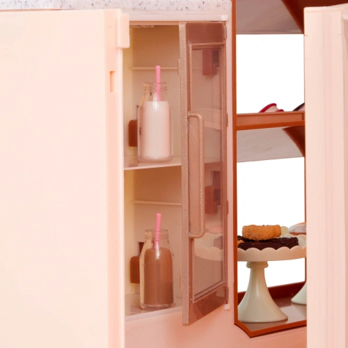 Впуснете се в вкусни приключения и си поднесете сладко забавление с комплекта за игра Our Generation Chip Chip Hooray Cookie Scooter! Той разполага с триколесен дизайн, подвижни дръжки и плавно въртящи се колела, за да могат куклите да доставят лакомства в движение. Поставете над 50-те реалистични аксесоара за игра с храна на рафтовете, плота и вътрешния мини хладилник. След това използвайте отварящата се врата в задната част на тротинетката, за да влезете в щанда за бисквитки, за да посрещнете клиентите. Това превозно средство с размерите на кукла има всички съставки, необходими за любителите на храната, за да използват въображението си както никога досега! Съвместим с повечето 46-сантиметрови кукли и аксесоари.