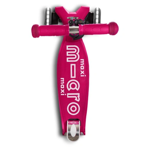 Тротинетката Maxi Micro Deluxe LED е част от премиум серията Deluxe LED, която съчетава стилен дизайн и иновативни функции. Светещите колела се захранват посредством динамо механика и осигуряват впечатляващо LED осветление без нужда от батерии. Колелата са от висококачествен прозрачен полиуретан (PU) с диаметър 120 мм, гарантиращи изключително плавно и меко каране. Лагерите ABEC 9 осигуряват прецизност и издръжливост, а управлението чрез прехвърляне на тежестта предлага естествено и интуитивно управление, което насърчава баланса и координацията.