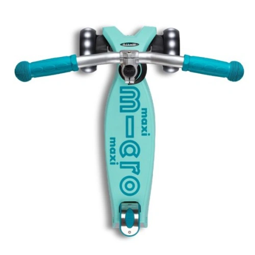 Maxi Micro Deluxe Pro LED е впечатляваща тротинетка за деца, които търсят не само функционалност, но и стил. Със своите широки LED предни колела и извито кормило тип „chopper“, тя привлича вниманието и осигурява комфортно управление. Конструкцията е създадена така, че да насърчава баланса и координацията чрез управление с накланяне на тялото.