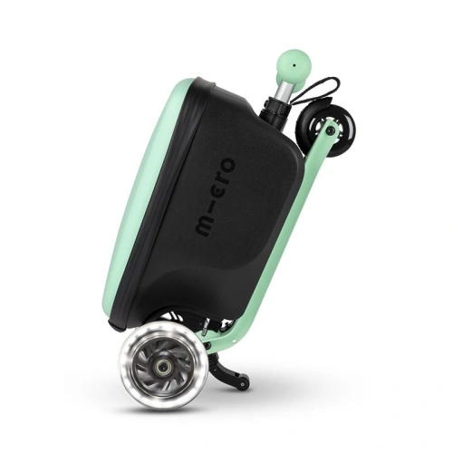 Micro Scooter Luggage Junior е практичен спътник за най-малките – съчетава в едно детско куфарче и тротинетка. Благодарение на вграденото захващане, куфарът може да се кара, дърпа и бута, като при бутане се осигурява по-ергономично положение на китките и мускулите. Регулируемото по височина кормило позволява продуктът да „расте“ заедно с детето до възрастта на началното училище. С две лесни дръжки куфарът-багажник се трансформира мигновено в тротинетка и обратно. Компактните размери улесняват пътуването с кола, влак или самолет, а децата могат сами да пренасят своите любими играчки без усилие.