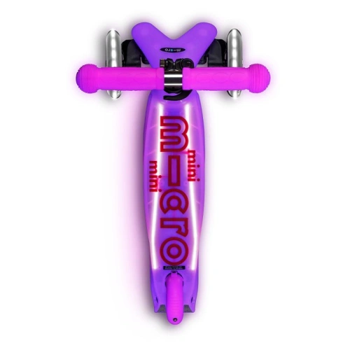 Mini Micro Deluxe Glow LED Plus е проектирана с фокус върху безопасността и забавлението. Регулируемото по височина кормило позволява тротинетката да расте заедно с детето – идеална за възраст от 2 до 5 години. Платформата с противоплъзгащо покритие осигурява стабилност и увереност при каране.