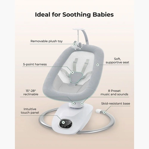 Дайте си почивка или се насладете на любимите си занимания – бебешката люлка от Momcozy ще държи и люлее бебето нежно, сякаш сте вие, благодарение на патентованата 3D Swing технология и разнообразните режими на люлеене. Осем успокояващи мелодии и висяща играчка допълват усещането за комфорт и забавление.