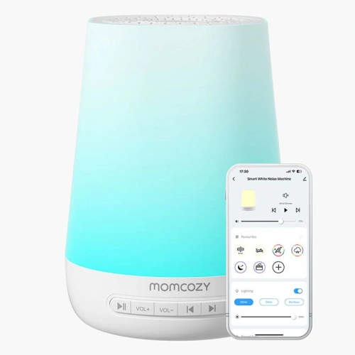 Открийте спокойствието с бебешката музикална лампа Momcozy. Съчетавайки 34 висококачествени звука на бял шум и нежна LED лампа със седем цвята, тя лесно се вписва във вашата вечерна рутина. Управлявайте настройките удобно чрез телефон или с докосване и осигурете спокойни нощи, съобразени с нуждите на вашето семейство. С Momcozy ви очакват спокойни нощи и освежаващи сутрини.