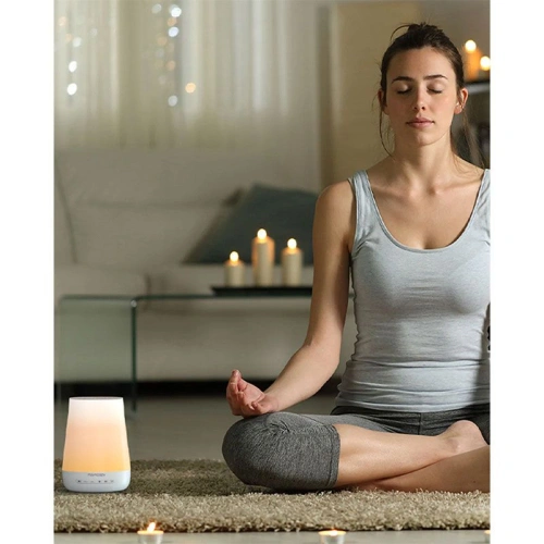 Създайте подходяща атмосфера с помощта на спектър от седем различни цвята. Независимо дали изберете успокояващо зелено за релаксация или нежно кехлибарено за топлина, устройството ви позволява да подберете перфектния фон. В комбинация с успокояващия бял шум тя се превръща в цялостна приспивна мелодия за всички сетива.