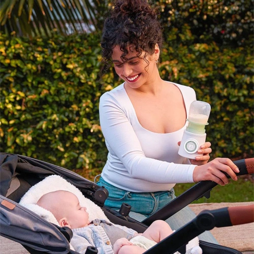 Той е снабден с усъвършенствана смарт сензорна технология, която осигурява винаги идеалната температура на млякото за вашето бебе, без риск от прегряване или влошаване на хранителните му качества. Независимо дали сте у дома, навън или на път, той прави храненето лесно и удобно. Подходящ за повечето марки шишета.