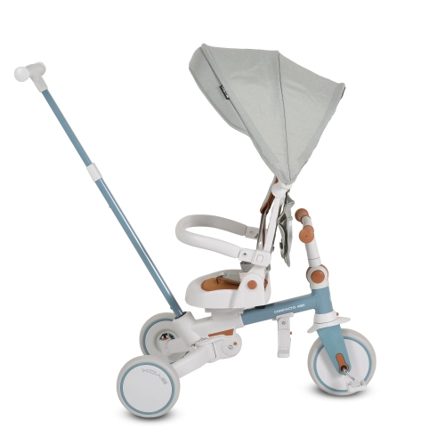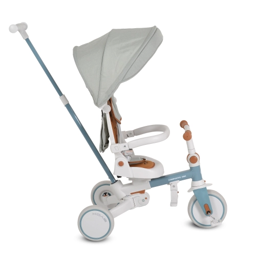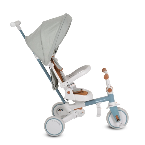 Многофункционалната триколка Compacto 4 в 1 е създадена да се адаптира към нуждите на детето от първите разходки до първите самостоятелни карания. Подходяща е за деца от 12 до 36 месеца с максимално тегло до 25 кг.