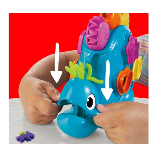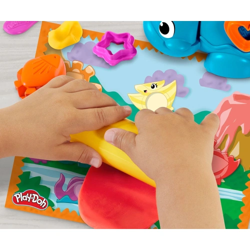 - Включи децата в занимания за съчетаване на форми и творчески разкази със забавната сцена на цветната постелка и Play-Doh инструментите;