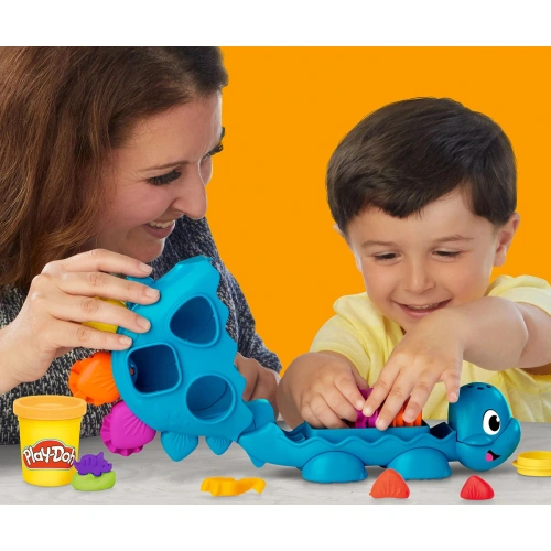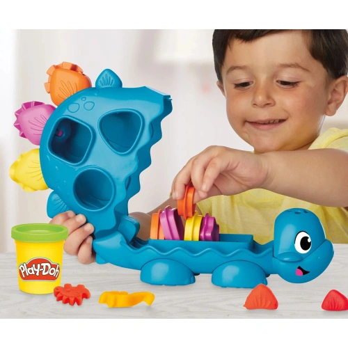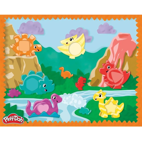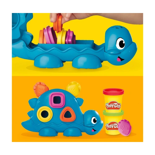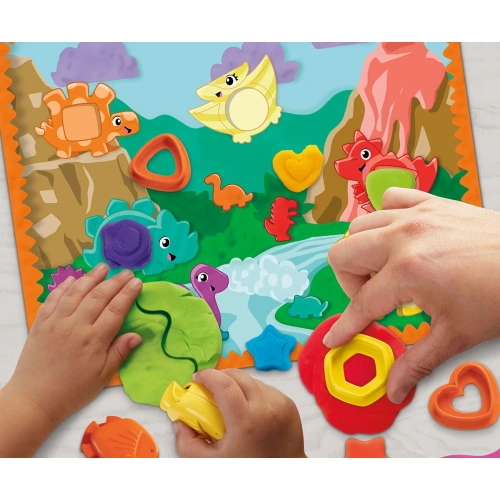 Време е за динозавърско парти с комплекта Play-Doh Shapes & Colors Dino! Този комплект за малки деца предлага разнообразие от забавни дейности с очарователен динозавър за приятел. Изрязвай и разточвай различни форми с Play-Doh аксесоарите. Удобният динозавър съхранява инструментите както вътре, така и отвън на детския комплект. Постелката за игра включва забавни занимания за съчетаване, които също така помагат на децата да държат своите Play-Doh творения извън масата. Това е чудесна играчка за въображение, която насърчава упражняването на фини моторни умения и откриването на форми и цветове чрез сензорна игра с докосване. Играчките с динозаври за момичета и момчета станаха още по-цветни!