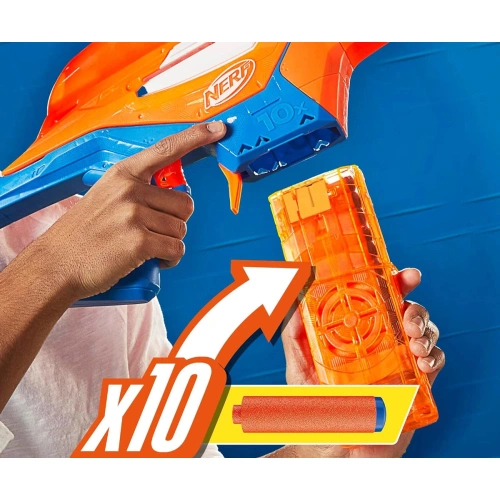 Пуснете 10 последователни стрелички от бластера Pinpoint, който включва щипка за 10 стрелички;