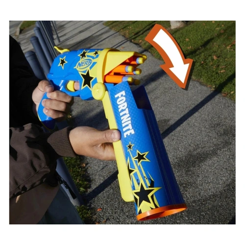 Бластерът Nerf Fortnite е вдъхновен от оборудването, използвано във Fortnite и се предлага в Half Tone Wrap от популярната видео игра! Включва бонус код за отключване на Half Tone Wrap Със своя страхотен начин за зареждане и цветна обвивка, бластерът Nerf Fortnite със сигурност ще привлече вниманието на опонентите в Nerf битки.