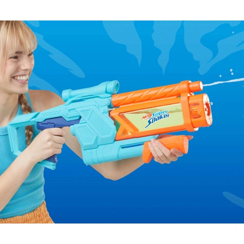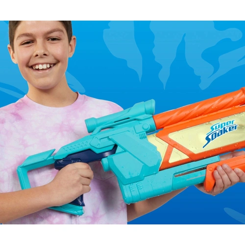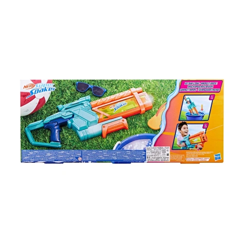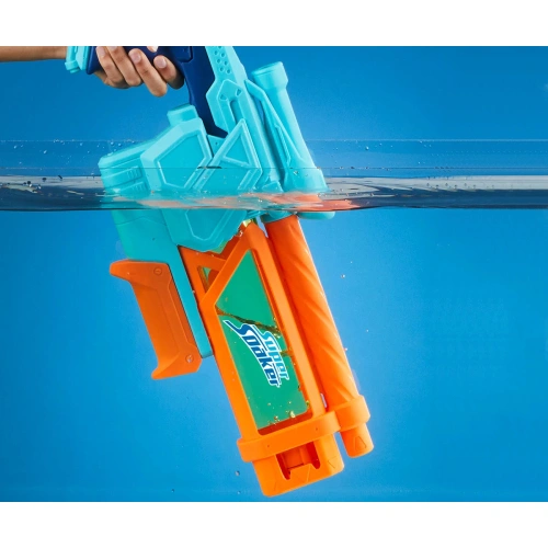 Водният бластер Nerf Super Soaker Mega Dunk-Fill разполага с иновативен резервоар за моментално пълнене, за да си готов за водна битка за нула време! Благодарение на специалния дизайн, резервоарът се пълни изключително бързо – просто го потопи и си готов! Няма нужда от натискане или отвиване – потопи резервоара във вода и наблюдавай как се пълни сам. Прозрачният резервоар побира до 1005 мл. вода. Потопи го във вода и вече си подготвен за забавни водни игри на открито. Помпи напред и назад, за да изстреляш мощна водна струя. Бластерът разполага и с мерник за по-точно прицелване. Nerf Super Soaker бластерите са страхотни водни играчки за деца и чудесни подаръци, които ще накарат всички да излязат навън за активна и разпръскваща забавление игра!