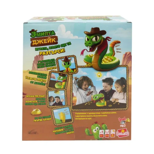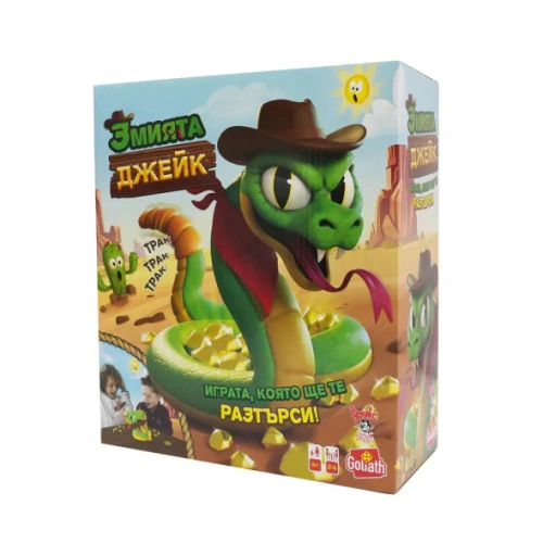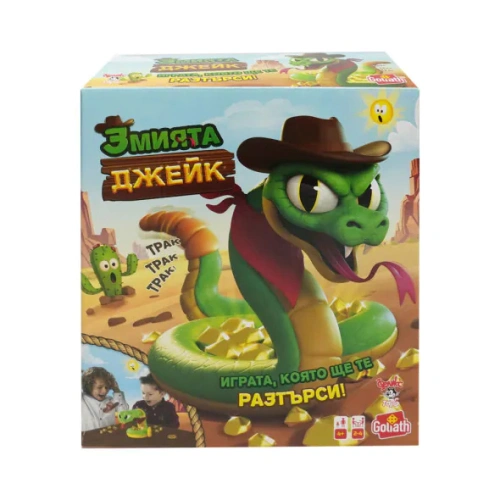Гърмящата змия Джейк е откраднала твоето злато! Внимавай за зловещото му тракане и се опитай внимателно да върнеш златото обратно. Но бъди нащрек – едно грешно движение и Джейк ще нападне! Неговото тракане засилва напрежението, докато чакаш големия скок. Ако Джейк те изненада в твоя ход, трябва да му върнеш половината от събраните късчета злато. Победител е играчът с най-много злато, когато последният къс бъде взет.Играта изисква 3 батерии AAA (не са включени). Подходяща за 2 или повече играчи.