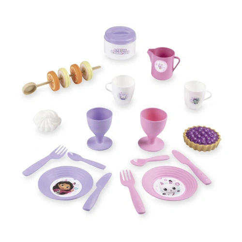 Вземете кошницата за пикник на вълнуващи излети! Красивата пикник кошница на Gabby's Dollhouse е с капак от две части и практична дръжка за носене. Пълна с аксесоари, нежно проектирани с мотиви от Gabby's Dollhouse, кошницата включва два комплекта за пикник с чаша, чаша за кафе, чиния и комплект прибори, каничка за мляко и захарница. Мотивите идват с лист със стикери, така че кошницата и аксесоарите да могат да бъдат декорирани индивидуално.