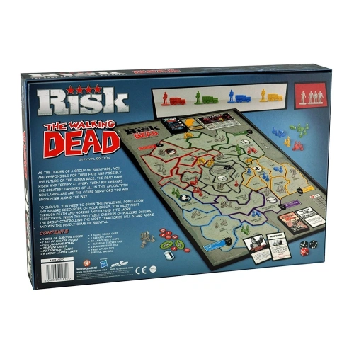 Риск: Живите мъртви разполага с карта, на която е изобразен южния регион на САЩ, където се развива действието в комикс поредицата, по която е базирано изданието. На картата са изобразени 32 територии и шест отделни зони. Освен да отблъскват атаките на своите опоненти, играчите трябва да преодолеят и орди от зомбита, които се появяват в началото на всеки един ход.
