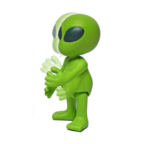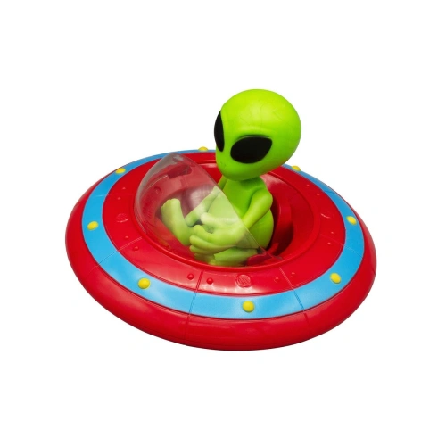 Тази играчка с футуристичен дизайн ще зарадва младите космически изследователи. Благодарение на своя фрикционен механизъм, корабът може да се движи напред сам: просто го дръпнете назад и го пуснете, за да видите как се движи през галактиката (или всекидневната). Комплектът включва 7,5 см зелено извънземно с очарователен вид, което може да седи в кораба си и да се отправи на мисия.