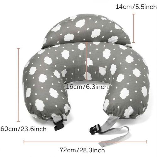 Благодарение на регулируемия колан за кръста, възглавницата приляга плътно и сигурно към тялото, като остава стабилна по време на употреба. Вградената повдигната страна (около 14 см) допринася за безопасността, като предотвратява приплъзването на бебето по време на хранене.