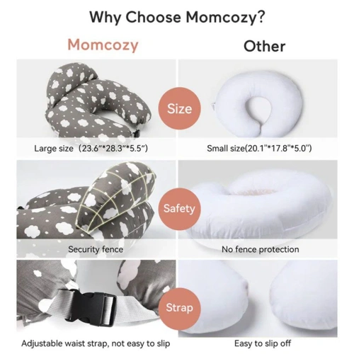 Възглавницата за кърмене Momcozy е създадена да осигури максимален комфорт както за майката, така и за бебето. Тя подпомага правилната стойка по време на кърмене или хранене с шише, облекчава натоварването в раменете и врата и улеснява ежедневието на всяка майка.