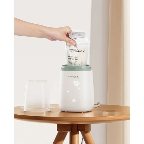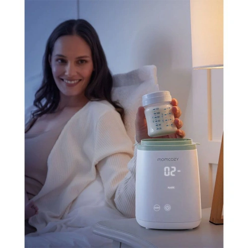 Интелигентният уред на Momcozy е съвместим с повечето видове и материали шишета и загрява кърма, мляко и бебешка храна равномерно и безопасно. Подходящ за различни етапи от храненето – от кърмене до твърда храна.