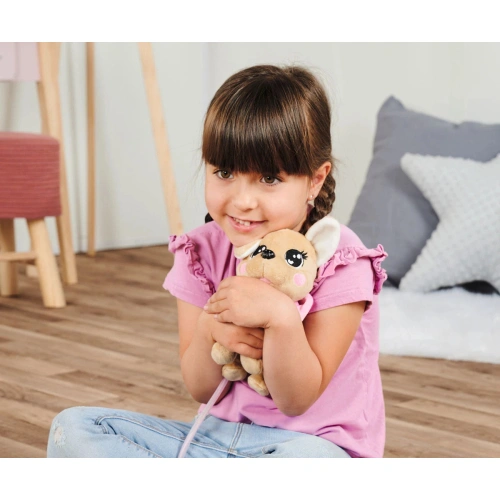 Толкова меко и пухкаво, кучето Chi Chi Love (20 см) с модерен розов шал бързо се превръща във верен спътник на деца над 3 години;