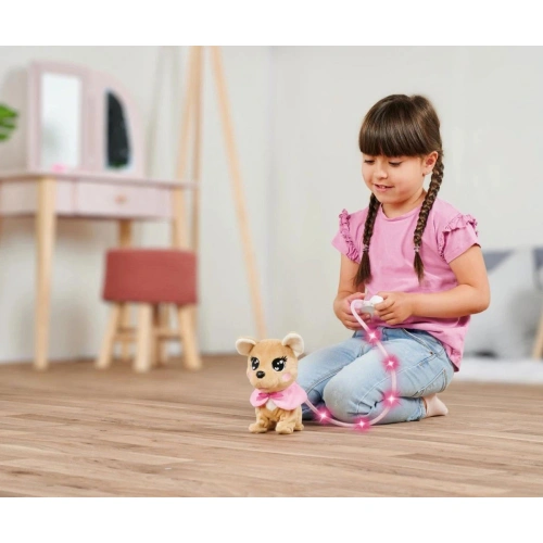 Акцентът на интерактивното кученце е неговият светещ повод за кучета (26 см), с който момичетата и момчетата могат да разхождат своята играчка за гушкане дори на тъмно;