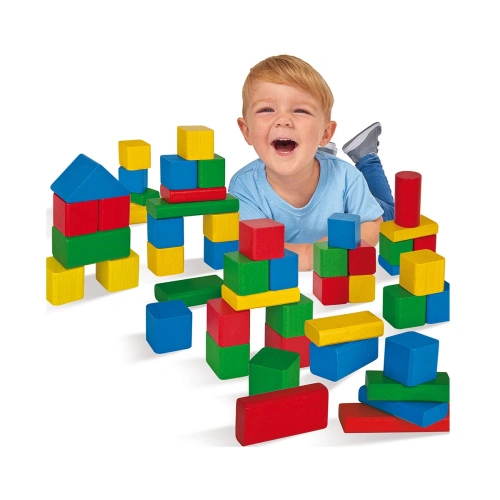 50-те ярко оцветени дървени блокчета от Eichhorn са идеални за децата от една година и нагоре. Строенето на кули и други структури развива техните креативни инстинкти и двигателни умения.
