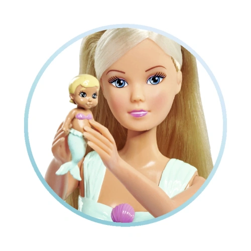 Steffi Love е истинска модна кукла. Тя обича модерните прически, своята малка сестричка Еви и, разбира се, приятеля си Кевин. Момичетата могат да стилизират куклата според най-новите модни тенденции. Стефи омагьосва като бременна русалка, чието бебе може лесно да бъде извадено от коремчето ѝ и така да се „роди“. До нея е Кевин като русал. Стефи и Кевин се грижат за своето бебе. След раждането то може да бъде поставено в малкото легълце във формата на мида.