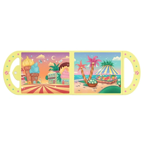 3 сцени за стикери и игрална страница за съвпадение на форми;