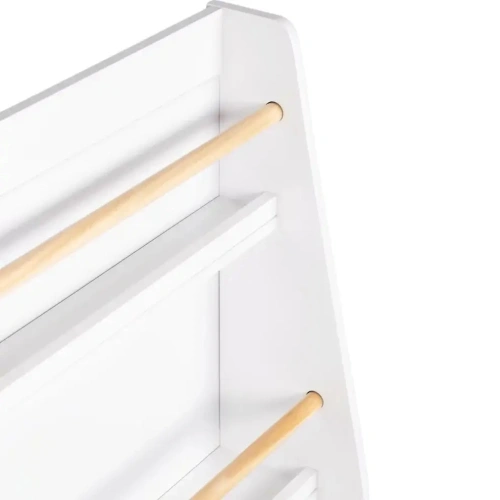 Организация и удобство: С етажерката, организацията на детските книжки става лесна и забавна задача. Височината на рафтовете е подходяща за малки деца, което ги улеснява да достигат до своите книжки и играчки. Това не само поддържа стаята подредена, но и насърчава децата да бъдат по-независими и организирани по метода Монтесори.