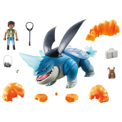 1300 години след събитията от „Как да си дресираш дракон“, драконите сега са просто легенда за съвременния свят. Когато геоложка аномалия отваря огромна, дълбока километри пукнатина в повърхността на Земята, учени от цял свят се събират в ново изследователско съоръжение, за да проучат мистериозния феномен. Скоро група неподходящи деца, доведени на мястото от родителите си, разкриват истината за драконите и къде са се крили - тайна, която трябва да пазят за себе си, за да защитят това, което са открили. Д'Анджело е син на бивш войник, който ръководи охраната в лабораторията, Д'Анджело е добър по природа и много дисциплиниран. Най-големият му страх е да не разочарова родителите си. С голям интерес към ветеринарната медицина, той бързо се превръща в „доктор-дракон“ на групата. Драконът на Д'Анджело е едноок дракон от клас Tracker. Колкото и голяма да е, Plowhorn е изгнаник от семейството си, тъй като всъщност е най-малката от глутницата. Състраданието и доверието на Д'Анджело помагат да се съборят стените й и дуото скоро открива, че обичат да разбиват неща заедно. В допълнение към подвижните крака и долната челюст, фигурата на PLAYMOBIL Plowhorn има и крило с панти. Когато черупките на крилете се обърнат нагоре, прозрачните крила се разкриват. Малък рог на главата на дракона служи като седло на Д'Анджело. С рога си Plowhorn може да разбие големия кристал.