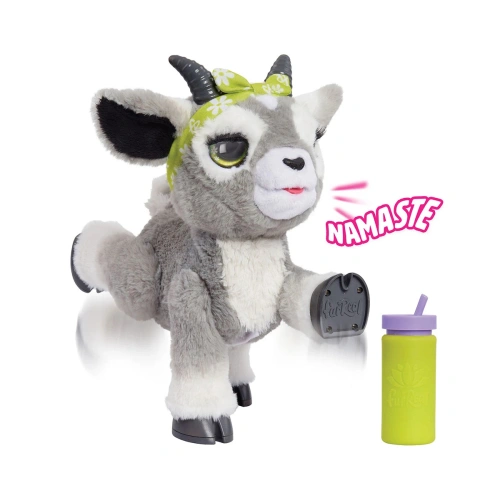 Намасте на ниво забавление с интерактивната плюшена играчка Йога козичка Дейзи. Тази реалистична интерактивна играчка коза предлага над 60 комбинации от звуци и движения. За да започнете играта, натиснете превключвателя на корема й и погалете гърба на Йога козичка Дейзи. Тя се смее и издава сладки йога фрази, като “Омм...” Продължете да я галите, за да видите как Йога козичка Дейзи изпълнява пози \"надолу с куче\" и \"птица куче\". Понякога дори ще издава звуци, докато е в поза – точно като истински йоги! След игра, дайте й да пие от бутилката, за да чуете забавни звуци. След това натиснете и задръжте гърба на Йога козичка Дейзи за 3 секунди, за да влезете в режим на медитация. Слушайте успокояваща музика и дълбоки вдишвания. С изключително меко сиво плюшено покритие, тази козичка с височина 29 см носи сладка зелена лента на главата си. Йога козичката Дейзи със сигурност ще бъде любимец в колекцията от плюшени животни и други furReal домашни любимци (продават се отделно). Изисква 4 x AA батерии (включени). Чудесен подарък за рождените дни и всички останали дни за любителите на животни и деца на възраст 4 години и нагоре.