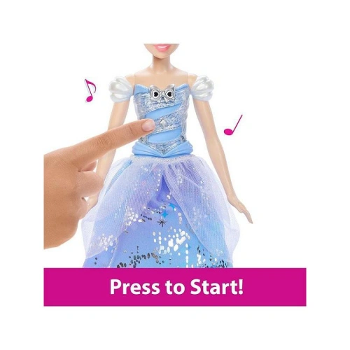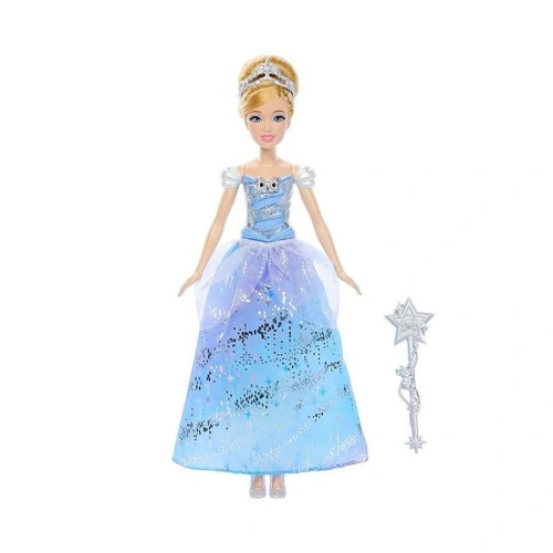 Потопете се в магията на приказките с тази очарователна кукла Пепеляшка от серията Disney Princess! Облечена в блестяща синя рокля и държаща сребърна магическа пръчка, Пепеляшка е готова да превърне всяка игра в кралско приключение. Със светлинни ефекти и музикални функции, тази кукла вдъхновява ролеви игри, творчество и приказно въображение.