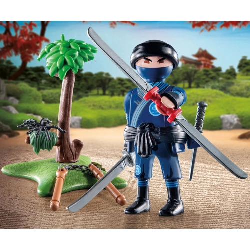 PLAYMOBIL Special Plus фигурка за игра нинджа с меч и много аксесоари. Комплектът PLAYMOBIL Special Plus, Нинджа ви кани във вълнуващия свят на бойните изкуства. С различни оръжия могат да се възпроизведат реалистични бойни упражнения. Веселите фигурки PLAYMOBIL Special Plus обещават много игри и са идеални за деца на 4 и повече години. Тези очарователни фигурки играчки могат да се използват самостоятелно или да се интегрират в други светове на PLAYMOBIL. С богатите си аксесоари те предоставят безкрайни възможности за творческа игра.
