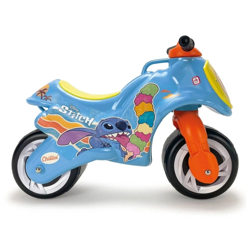 Официално лицензираният мотор Disney Neox Stitch от Injusa има забавна декорация, вдъхновена от филма Lilo & Stitch. Неговите широки колела са проектирани да осигурят повече стабилност и да направят карането по-безопасно. Този Foot to floor Moto Neox Stich е перфектният подарък за малките, които започват да ходят самостоятелно. Препоръчва се за деца над 18 месеца, има официален лиценз на марката и перманентна и водоустойчива декорация, която предотвратява отлепването на стикерите и придава на продукта голяма издръжливост и безопасност. Изработен е с ергономичен дизайн и висококачествени материали, като включва широки пластмасови колела за осигуряване на отлична стабилност при движение. За да улесни пренасянето му от родителите, когато малките се уморят да играят с него, той разполага с дръжка за носене на върха на шасито. Поддържа максимално тегло от 30 кг, височината на седалката е 33 см, а височината на кормилото е 49 см от земята.
