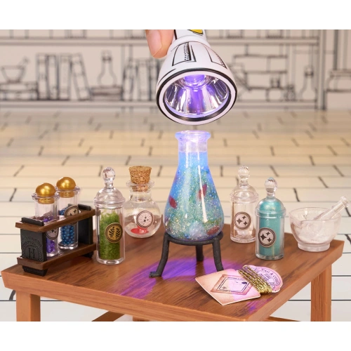 Хари Потър™ пристига в Miniverse на MGA! Новият комплект направи си сам Make It Mini Potions Class включва мини реплики на предмети, които да построите, направите, настроите и изложите! Всеки комплект съдържа над 100 части, с които да създадете мини реплика на класната стая по магии от филмовата поредица Хари Потър! Следвайте инструкциите, за да изградите своята мини класна стая за час по отвари. От стените до пода и мебелите, има толкова много неща за СЪЗДАВАНЕ в този комплект. Когато завършите създаването на вашата класна стая за час по отвари, оставете я да изсъхне. След като изсъхне, имате готова мини реплика готова за показване! Толкова много място и пространство за показване на вашите мини отвари! Изключителни вълшебства и аксесоари, включени в комплекта, могат да бъдат намерени само тук! Убедете се, че поставяте мини отварите си на слънце или под 365nm UV светлина! Забавлението не спира дотук! Завършената ви класна стая за час по отвари не е единственият колекционерски предмет. От мини реплики на казани до мини лъжици за смесване – има толкова много уникални реплики на съставки, пакети и аксесоари от класната стая, които да събирате! Събирайте всички Make It Mini Potions колекционерски предмети! Ако не е Miniverse на MGA, значи не е Miniverse на MGA! Не е подходящо за деца под 8 години. Необходимо е наблюдение от възрастен.