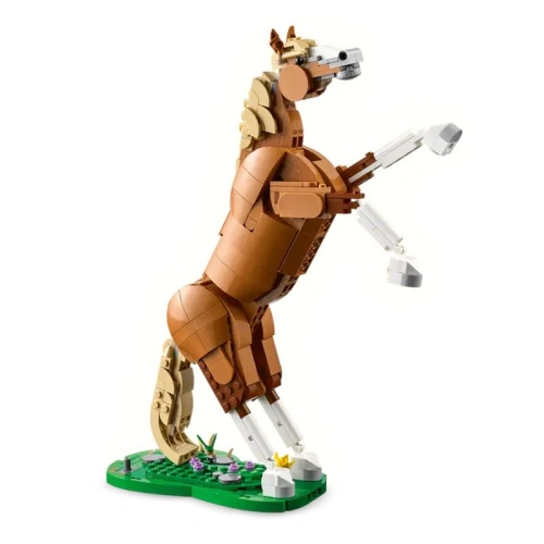 Момичета и момчета, които обичат животни, ще се забавляват с творчески истории с комплекта LEGO® Creator 3in1 Beautiful Horse (31166). Подвижният модел на конче може да движи главата, врата, бедрата, глезените, опашката и едно от колената си. Включена е основа с тревен ефект, върху която децата могат да поставят кончето в 3 различни пози: изправено на 3 или 4 крака, или надигнато на задните си крака.