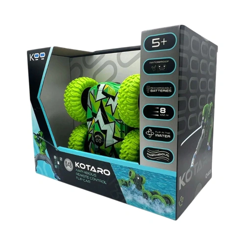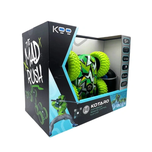 Тази кола-амфибия може да се движи както по суша, така и във вода. Колата може също да се преобръща във всякаква среда. Освен това дистанционното управление е напълно водоустойчиво и няма нужда да стоиш извън водата, за да играеш – спокойно можеш да влезеш във водата заедно с колата. Цялото превозно средство е напълно водоустойчиво, което позволява безпроблемен преход между суша и вода.