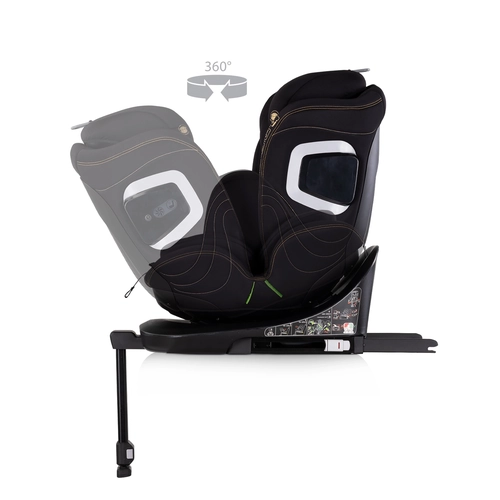 Столчето се върти на 360 градуса върху пластмасовата основа, което позволява бързо и лесно да завъртите детето по посока на или обратно на движението, както и да завъртите седалката настрани, за да осигурите детето в столчето. Изработена от хипоалергенна, супер мека материя, седалката включва абсорбираща пяна за оптимална поддръжка и ергономичност.