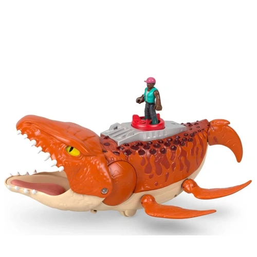 Вдъхновен от Jurassic World Rebirth, играчният комплект Imaginext Aquachomp Mosasaurus от Fisher-Price е готов да хапе, гони и реве в дома на всеки фен!